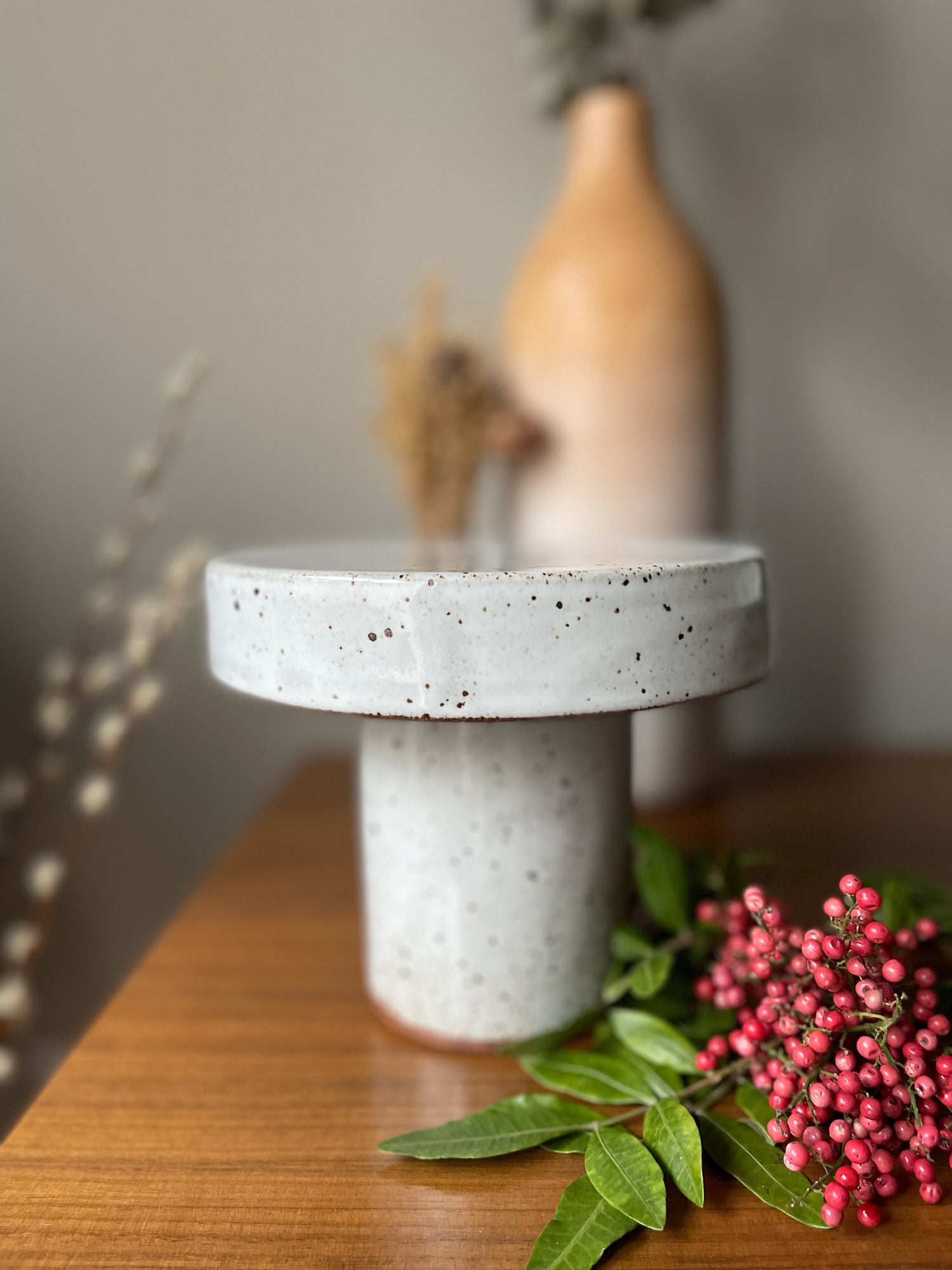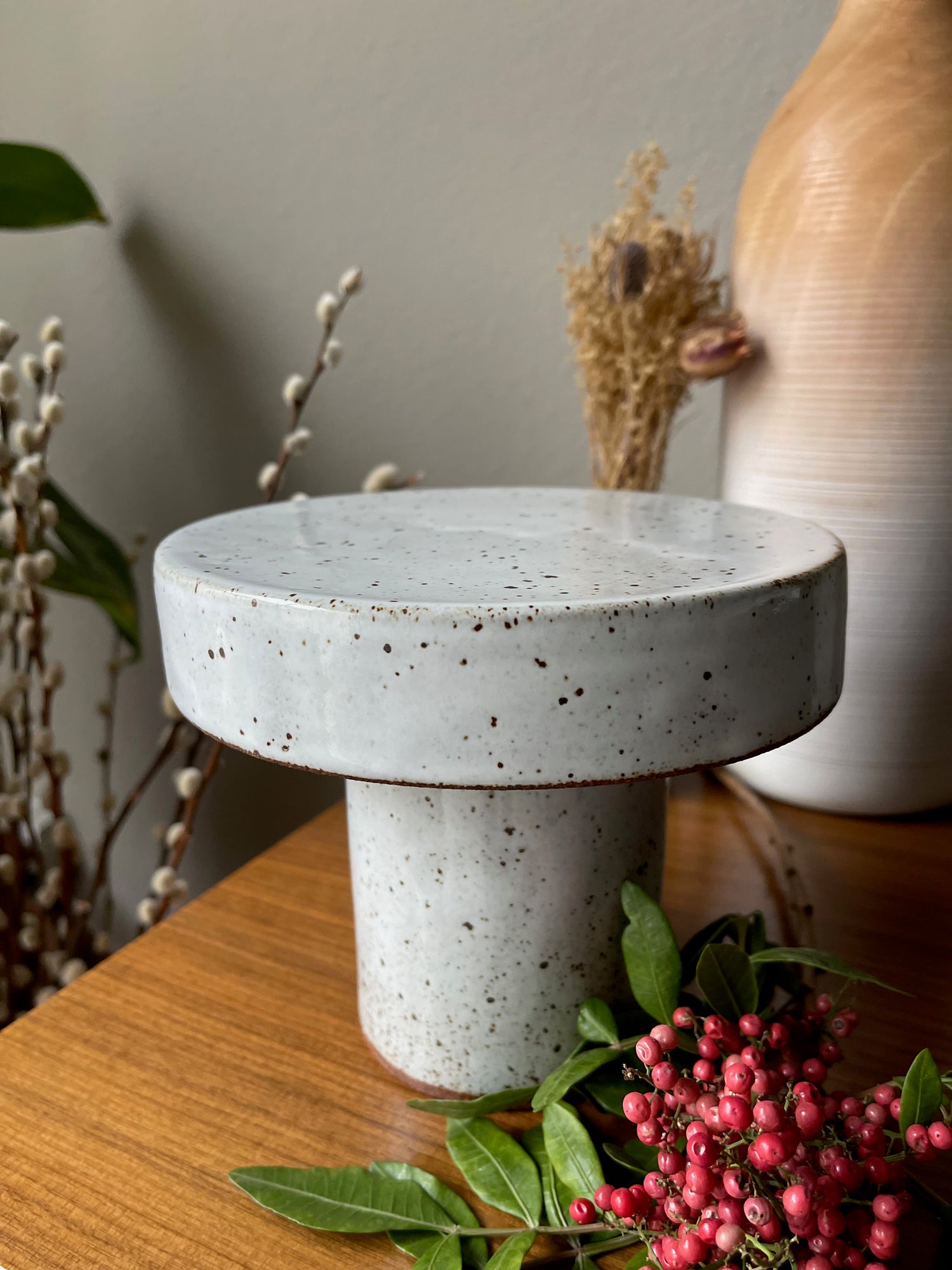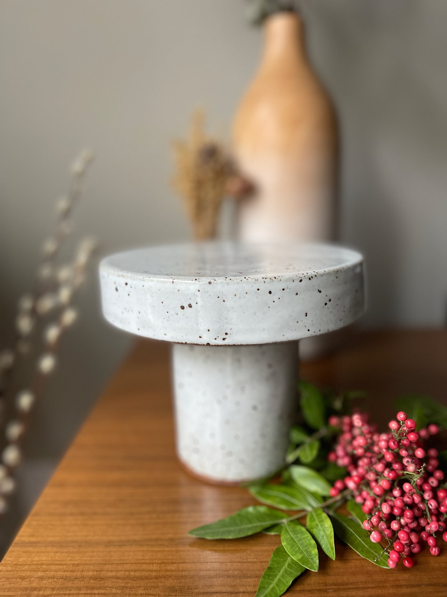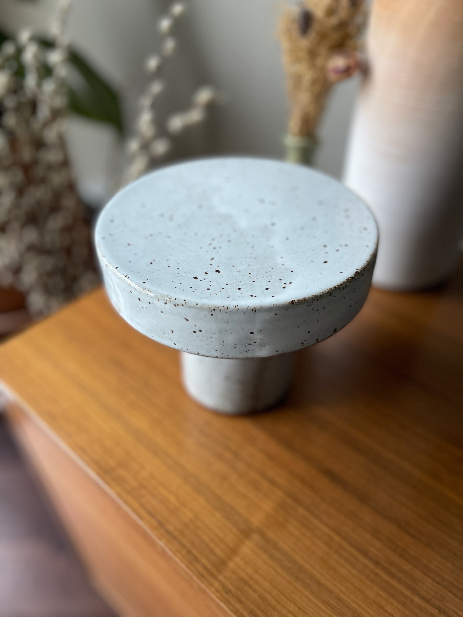 Handmade stoneware mini cake stand.