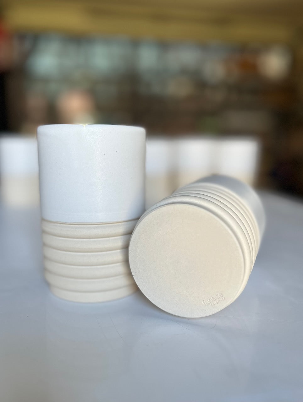 White Ribbed Cups (set of 2)